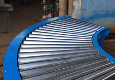 90o轉彎滾筒線利用錐形滾筒內外線速度不同,根據不同規格尺寸物料的非標設計制作,傳動方式可以根據滾筒輸送機的結構選擇,不同重量的物料傳動形式也不一樣,滾筒外表可以包角防滑減震處理,亦或者鍍鋅防銹處理。